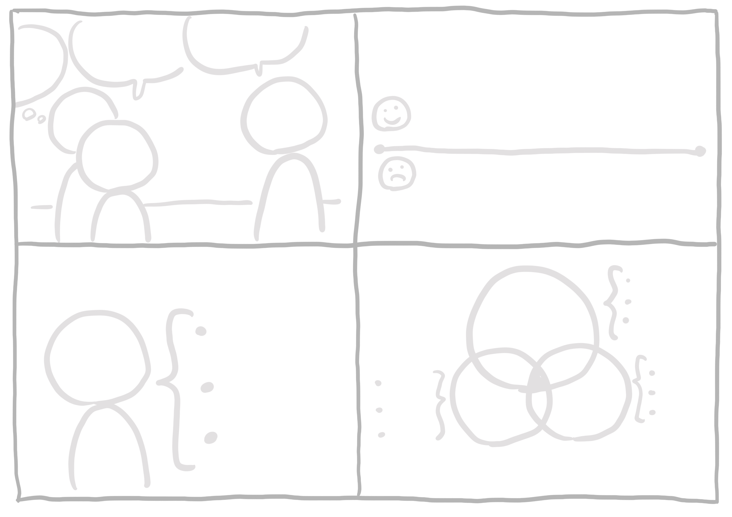 - 接著,在頭上畫上表情,旁邊加上對話框,重現彼此說過的話,如果還記得當下的心情,可以在頭邊加個「想法框」。