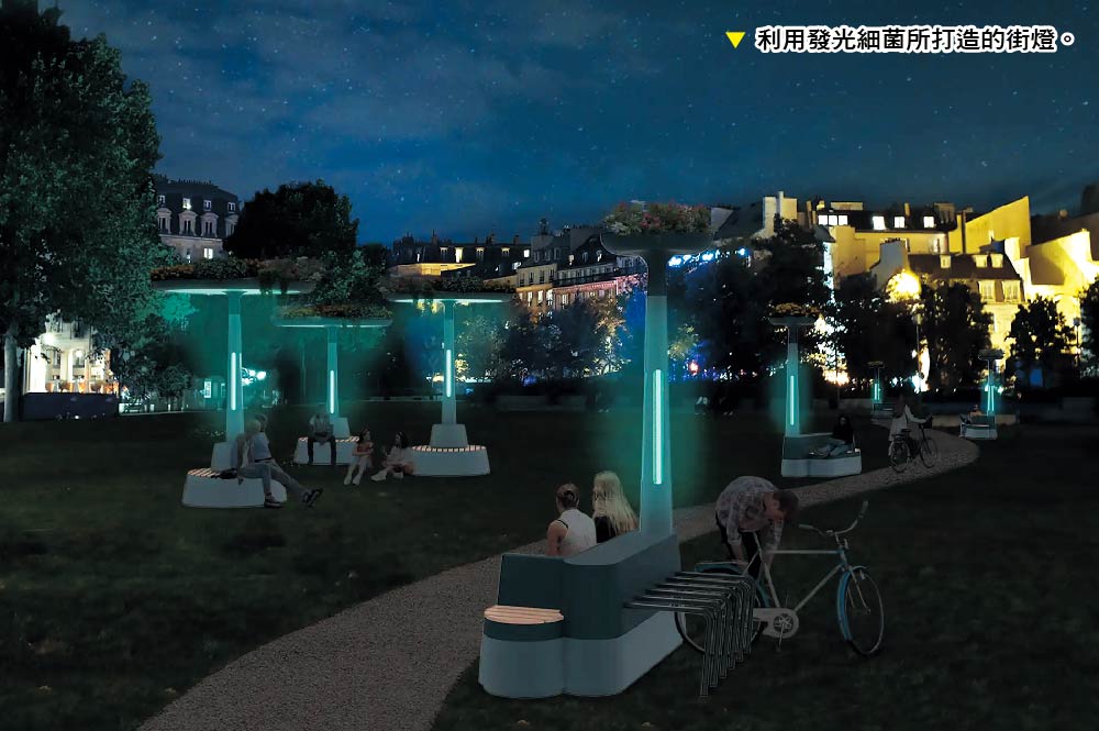 - 生物發光與生物螢光不只讓我們驚嘆,更成為 科學家的靈感來源,啟發了科學與科技的新方向。 在醫學方面,將發光基因轉殖到細胞或微生物內, 可以透過發出的光來觀察、追蹤細胞活動或偵測病 原體,也可以追蹤癌細胞的生長和擴散情形。 在日常生活中,生物發光原理可應用於食物新 鮮度的判別、基因改造作物的辨識,或是改造農作 物及家庭植物,讓其在需要水分時發光,以有效利 用及節省水資源。在環境科技方面,科學家嘗試研 發「生物發光樹」,讓街道兩旁的樹木在夜裡自動 發光,城市將不再需要大量耗能的路燈,既環保又 美觀。除此之外,法國 Glowee 公司將發光細菌放 在充滿鹽水的容器中,打造出「生物發光路燈」, 完全不需要電力。雖然有些技術可能還在實驗的階 段,或是要大量生產仍有困難,但已經讓人對未來 充滿了想像。 也許有一天,夜市的攤位會由發光植物照亮, 公園小徑也不靠路燈照明,而是靠著生物發光的祕 技來點亮黑夜,甚至連書籍都能自行發光,讓人隨 時隨地在黑暗中閱讀,完全不需要電池或任何燈 具。也許有一天,有更多的也許都將成真,化為更 多的驚喜!
